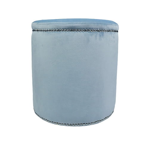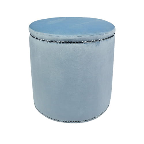 Okrągła pufa-walec w kolorze jasno-niebieskim z efektownymi, ozdobnymi pinezkami - to siedzisko inspirowane najmodniejszymi trendami oraz bardzo popularnym stylem Glamour. Pufa jest zgrabna, jej wysokość to 42 cm, a średnica 40 cm. Dzięki niewielkiej wadze jesteśmy w stanie ją przenosić w dowolne miejsce.