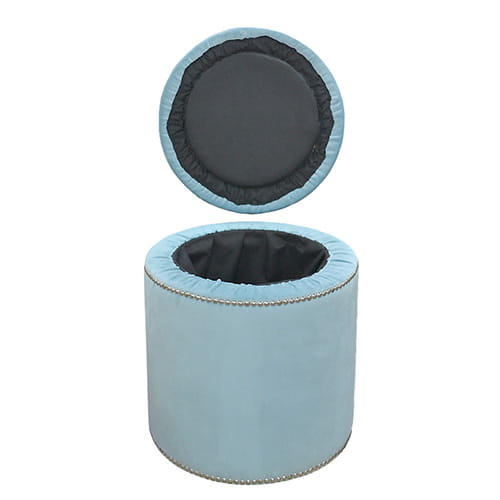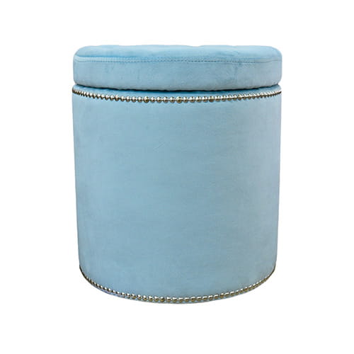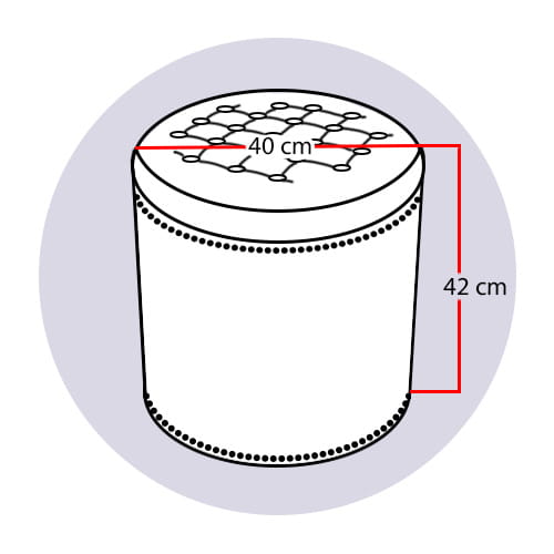 Pufa posiada pojemnik do przechowywania ukryty w siedzisku, jest wysoka na 42 cm, a średnica siedziska to 40 cm. Stylowe pikowania zakończone guzikami i ozdobne pinezki (nity) dodają jej wyjątkowego charakteru i uroku.