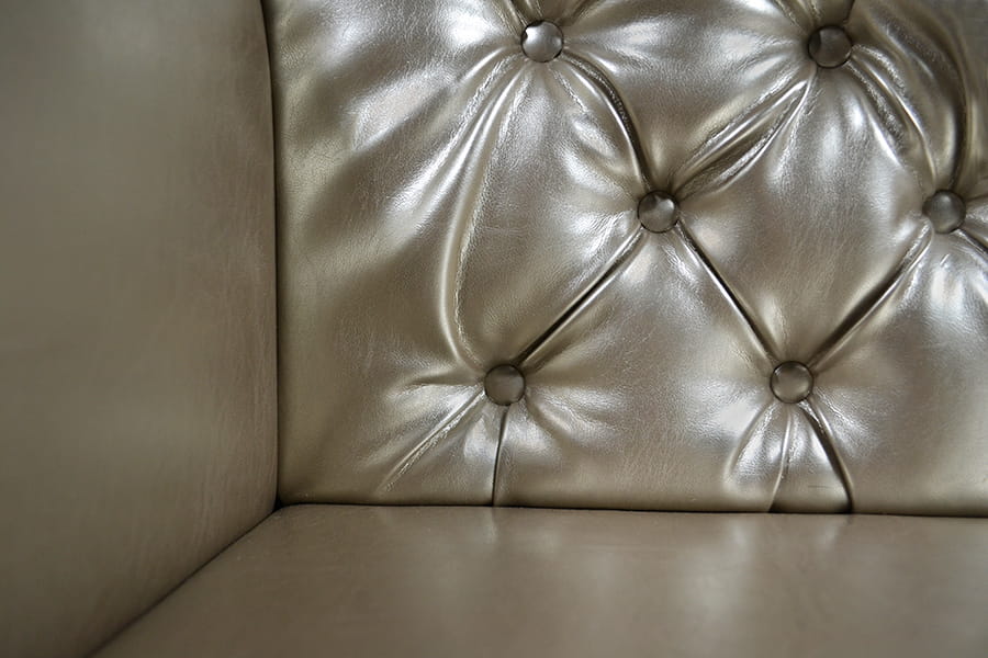 Został tapicerowany bardzo elegancką, wręcz luksusowo prezentującą się wysokogatunkową ekoskórą w złotym kolorze, który doda szyku każdemu wnętrzu. Eko skóra to bardzo praktyczny materiał - łatwy w utrzymaniu czystości oraz odporny na zdarcie.